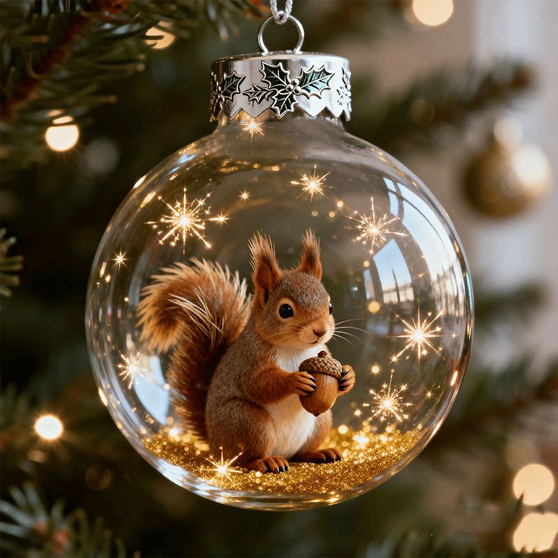 Within a crystal-clear sphere, a lifelike hummingbird hovers mid-air, its emerald feathers shimmering among floating gold stars, bringing surprise and delight to your holiday season.